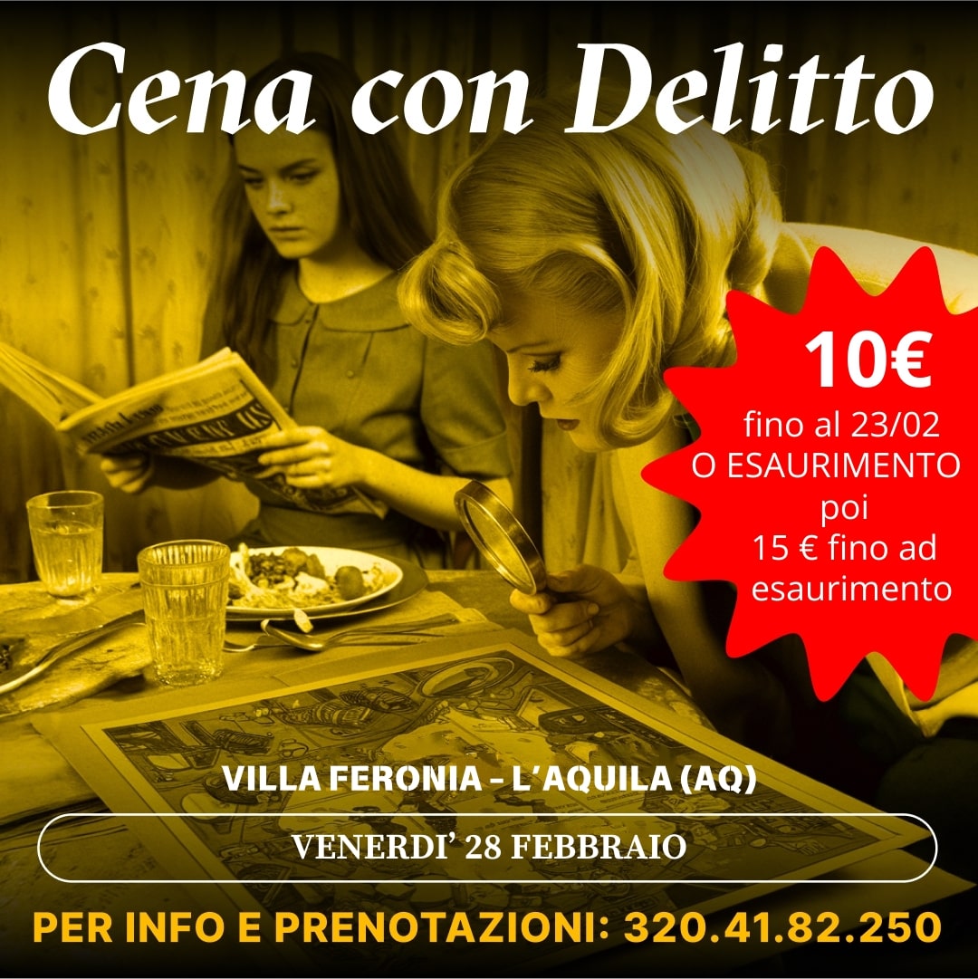 Gli eventi di “Cena con Delitto” registrano puntualmente il tutto esaurito, rappresentando un’esperienza esclusiva e riservata a un numero limitato di partecipanti, accessibile unicamente su prenotazione. Potrai acquistare il tuo biglietto con estrema facilità online, ricevendolo direttamente via email. Senza una prenotazione anticipata, non sarà possibile prendere parte all’evento. Il biglietto non è acquistabile in loco e non sono accettate prenotazioni telefoniche presso la struttura. Goevent.it è l’unica piattaforma ufficiale attraverso cui effettuare la prenotazione, che richiede l’acquisto obbligatorio del ticket online. Non perdere l’occasione di immergerti in questa avvincente esperienza!