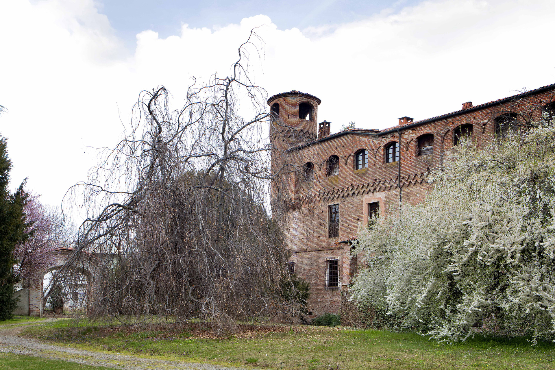 La luce soffusa delle candele, gli affreschi e le pietre del castello creano un contrasto affascinante con l’illuminazione moderna dei tulipani: antico e contemporaneo si fondono in un equilibrio perfetto.